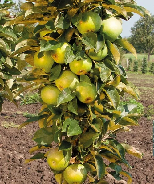 Tyto jabloně umožňují sklizeň na velmi úzkém prostoru. Budou jen 100 cm široké, 3 m vysoké a do stran se vyvíjejí jen květní výhony a poupata - odpadá tak řez stromků. Již v květnu se promění v překrásný sloup květů. Při ideálních pěstebních podmínkách lze od 2. roku na stanovišti sklízet delikátní šťavnaté aromatické plody, schopné uskladnění. Pomocí druhé odrůdy se dosáhne přece jen znatelně vyšších výnosů.