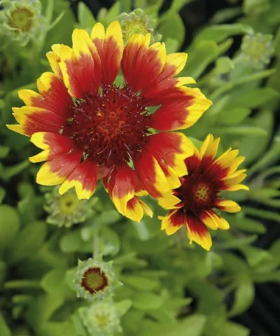 Kokarda. Gaillardia grandiflora Kobold. Výborná trvalka k řezu do vázy. Kvete vytrvale po celé léto. Po odkvětu seříznout.