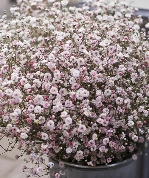 Nevěstin závoj plnokvětý růžový. Gypsophila pan. Zvláštně narůžovělý, plnokvětý, hustě kvetoucí nevěstin závoj. Jemný a elegantní, skvěle doplní letní kytice. Usušený nevěstin závoj slouží jako skvělá dekorace! Na pěstování je zcela nenáročný. Vytrvalá rostlina, která se na podzim seřezává těsně nad zemí.