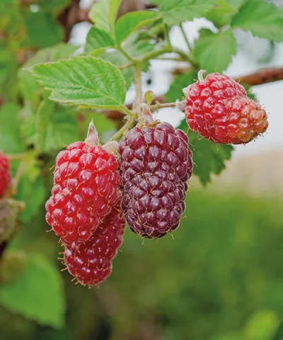 ´Tayberry´. Rubus ´Tayberry´. Specialita z Anglie! Kříženec malin a ostružin! Dlouhé, až 5 cm velké plody nechte dozrát až do tmavé vínové barvy. Můžete je zamrazit nebo zavařit, nejvíc si je ale vychutnáte čerstvé. Rostlina je plně rezistentní vůči nemocem a nenáročná na půdu a stanoviště. Nejlépe ale plodí na slunci se zastíněnými kořeny. Plodí stále průběžně od konce června do srpna v každé dobré zahradní zemině. Úroda je bohatá – sklidíte kilogramy z jedné rostliny! Samosprašná.