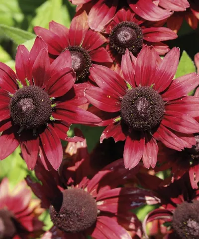 Rudbékie Cherry Brandy. Rudbeckia hirta 'Cherry Brandy'. Tato trvalka v temně třešňové barvě vypadá nádherně v zahradě i doma ve váze. Pěstujeme na slunci.