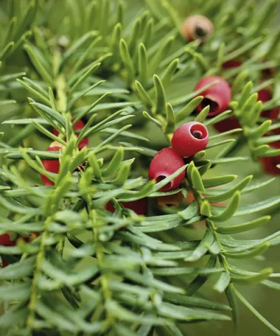 Sytě zelený tis. Taxus baccata. Tím, že už odspodu je tak bohatě rozvětvený, je přímo předurčen pro prvotřídní, husté a neprůhledné živé ploty. Navíc výborně roste jak na slunci, tak ve stínu. Tisy jsou stálezelené, a to i v zimě. Lze tvarovat dle potřeby. 3 rostliny na 1 bm. Dodáváme v květináči.