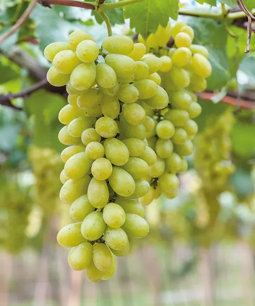 Vinná réva ´Afuz Ali´. Velké, zlatožluté bobule. Sladké po datlích s muškátovou příchutí. Oblíbená stolní odrůda. Díky bujnému olistění ideálně pokryje ploty a pergoly.